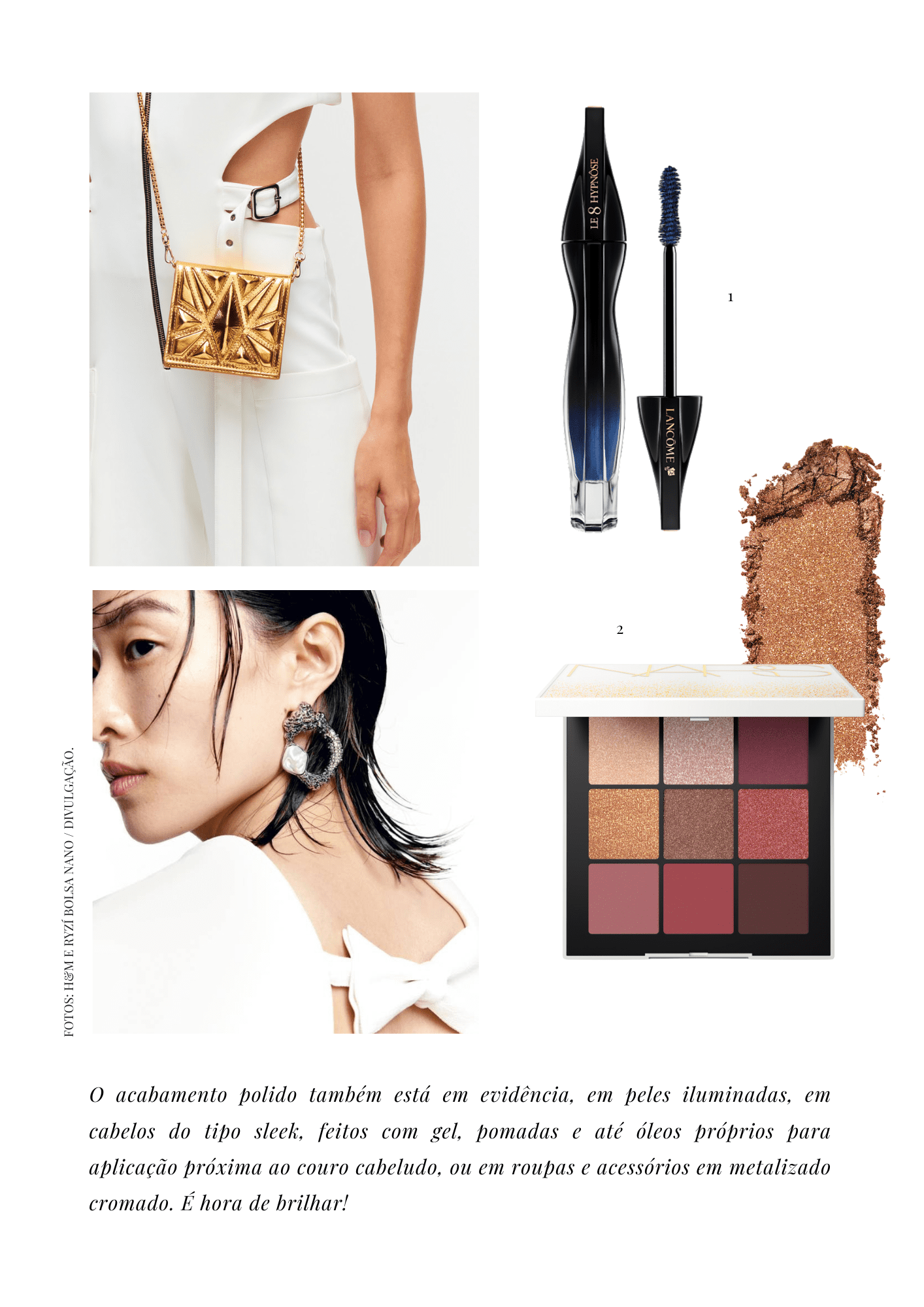 Quais são as palavras-chave para o período? Materiais vindos da natureza, metalizados, olhos em evidência, cabelos com muito gel e extravagâncias.